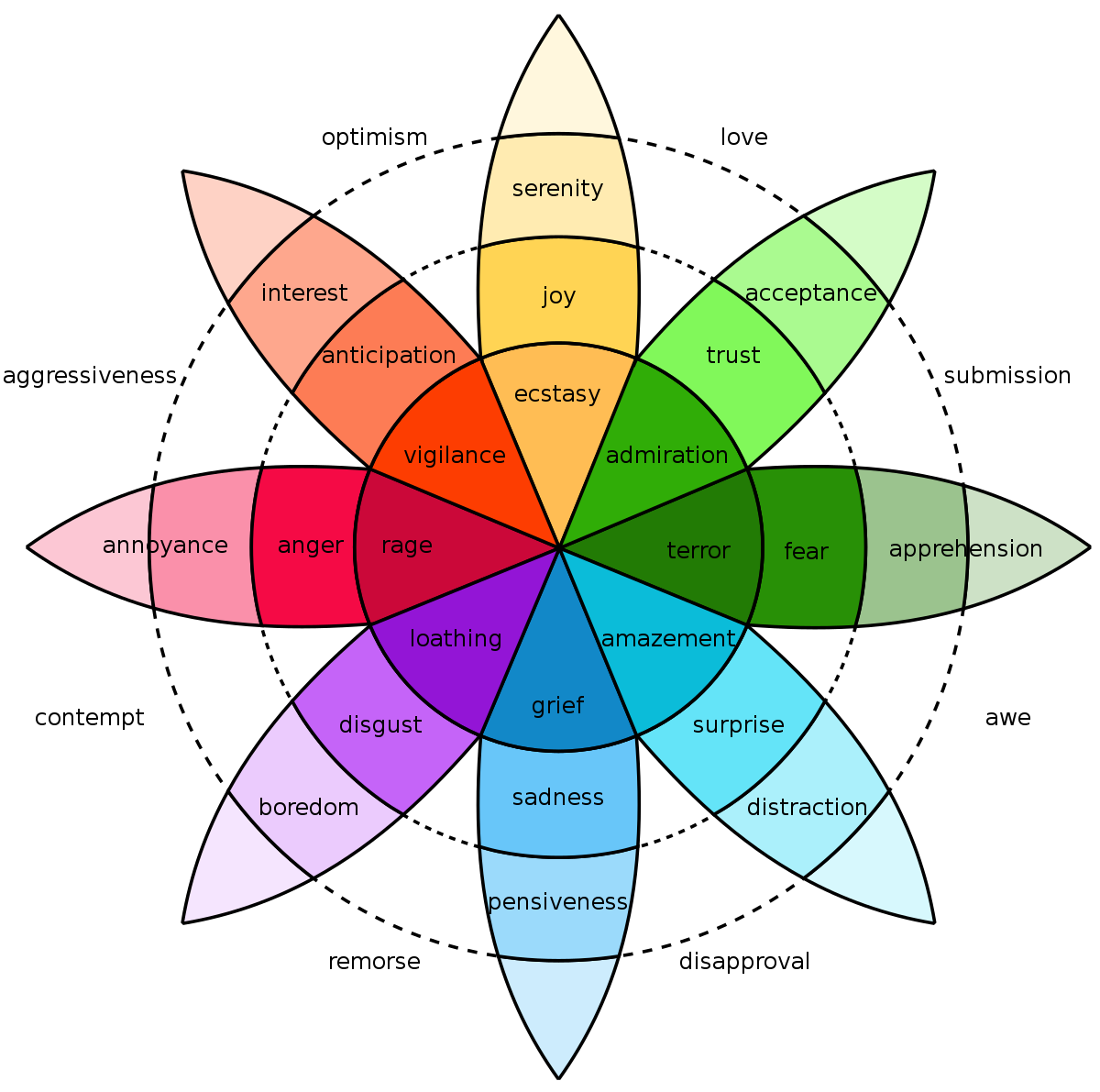 Osservando Il fiore di Plutchik si può intuire in maniera sostanzialmente semplice le emozioni che proviamo, i loro diversi stati e le loro connessioni. Ci spiega che sono il risultato di “miscele” ed eventi di varia natura. Capendo meglio la derivazione delle varie emozioni, possiamo comprendere anche perché le proviamo e perché ci comportiamo in un certo modo.